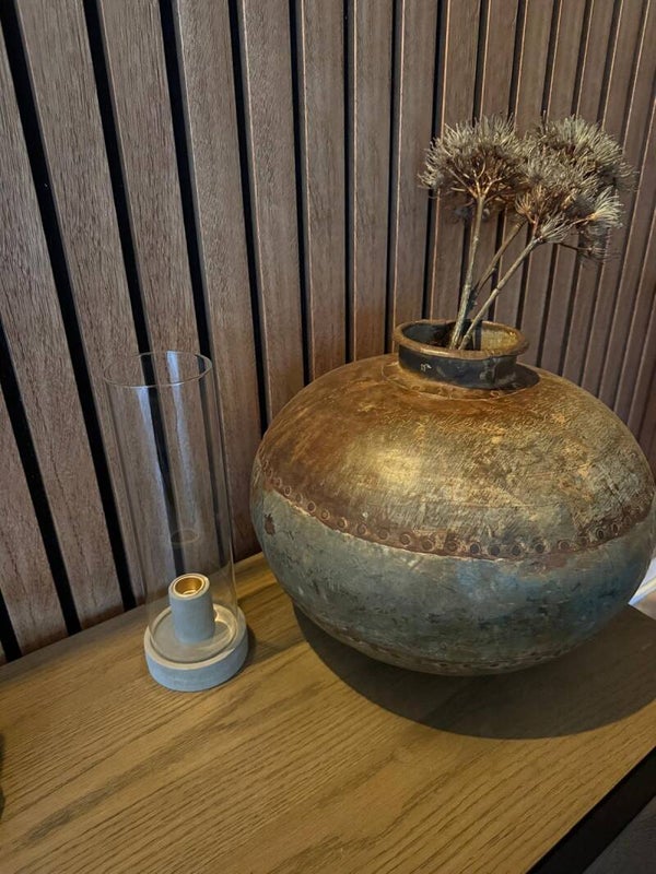 Breng sfeer en stijl in je interieur met deze elegante kandelaar. De stevige voet van cement zorgt voor een robuuste, industriële uitstraling, terwijl de glazen houder een verfijnd en modern accent toevoegt. Perfect voor dinerkaarsen, en ideaal om te combineren met andere woonaccessoires.