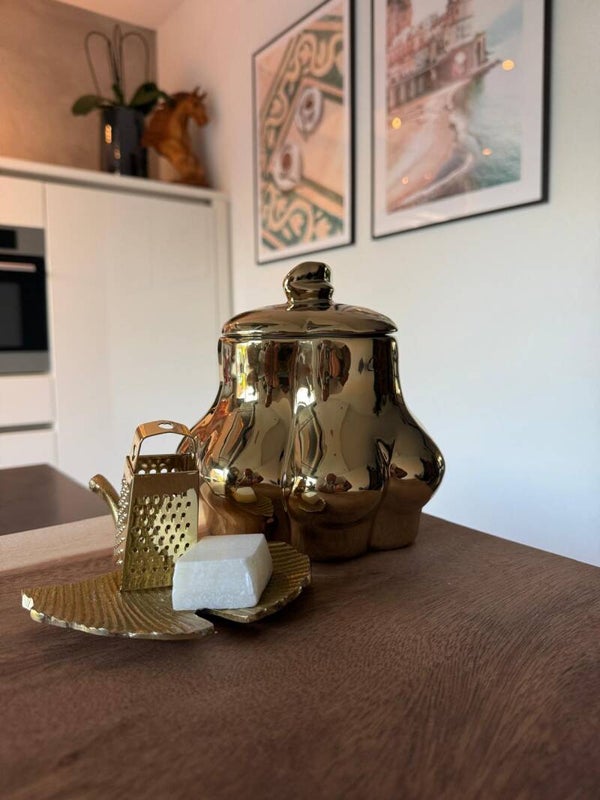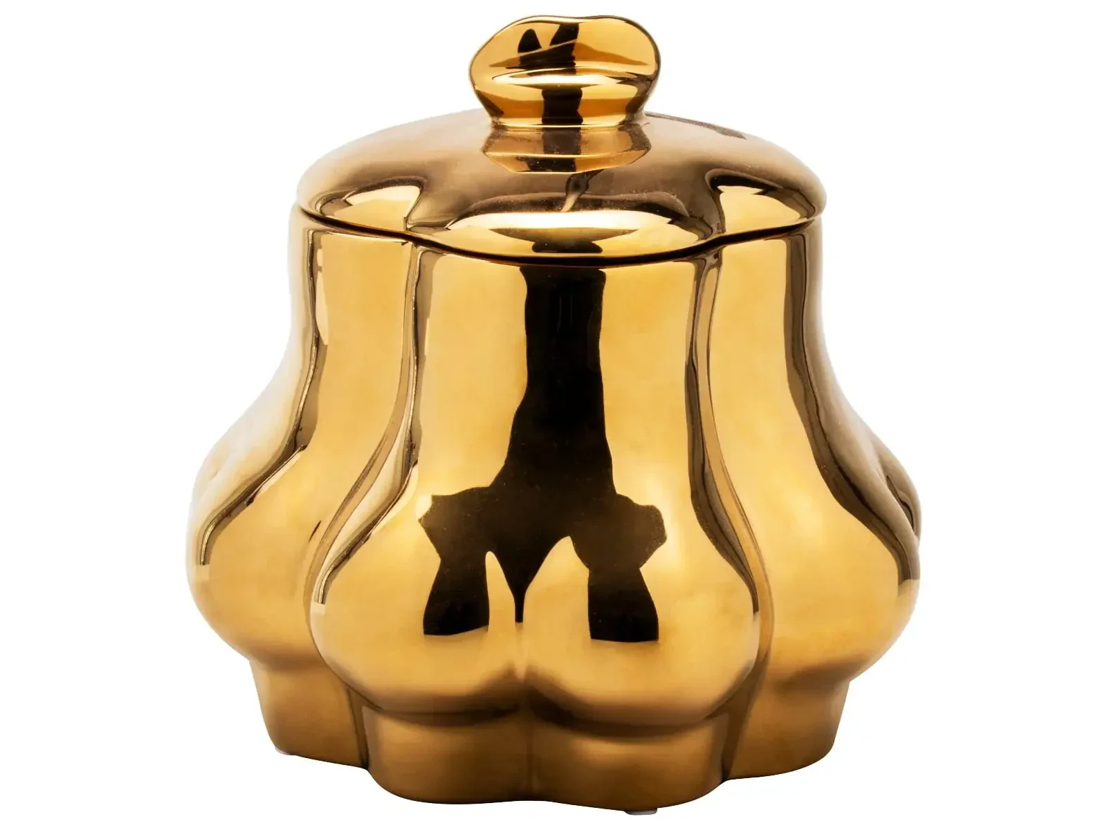 Maak een statement in je keuken of interieur met deze opvallende voorraadpot van Gusta in de vorm van een ronde billenpartij. De gouden afwerking geeft dit speelse ontwerp een chique uitstraling, waardoor het perfect past in zowel moderne als eclectische interieurs.