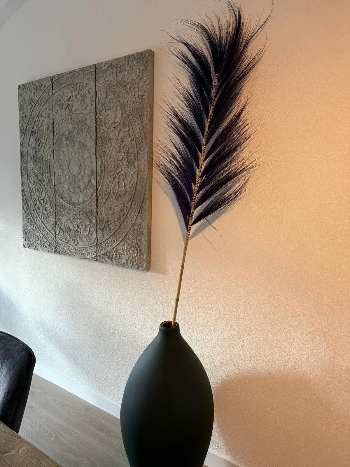 Breng een natuurlijke en sfeervolle uitstraling in je tuin of onder de veranda met deze decoratieve veer op bamboe stok van 220 cm. Perfect als zomerse decoratie en een echte blikvanger in je tuin, op het terras of onder de veranda.Of natuurlijk in jouw sfeervolle interieur.